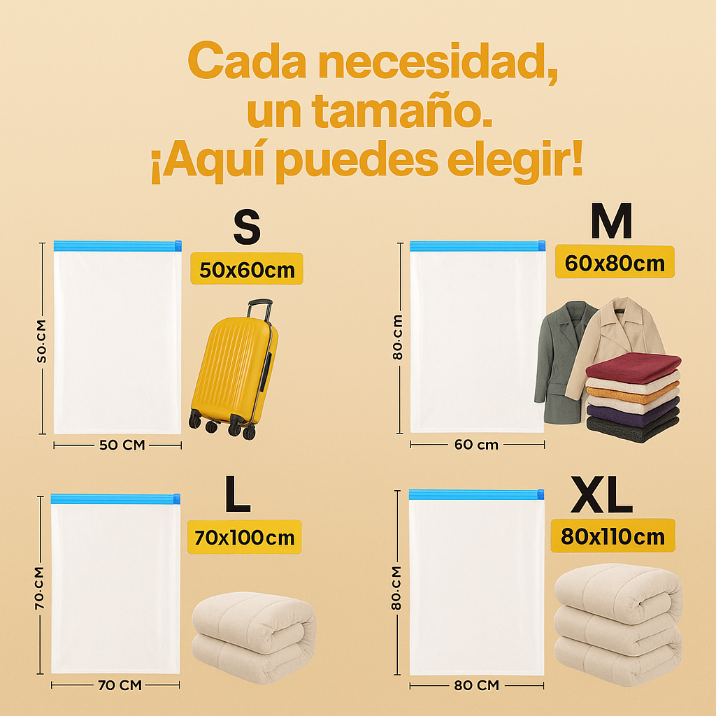 | Ahorro de espacio | Gracias al vacío puedes comprimir la ropa hasta un 80 % | |